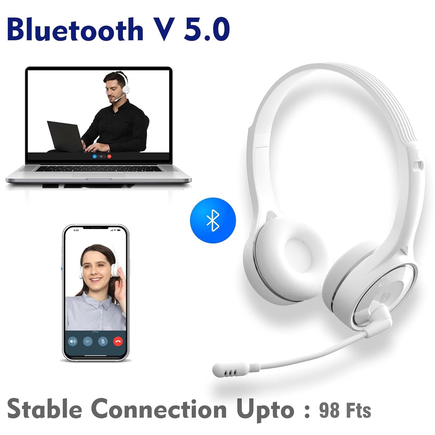 BLUETOOTH HANDS FREE: Powered with Bluetooth 5.0, enjoy wireless hands-free calling experience with computer, laptop or mobile phone. Stable Bluetooth connection up to 98 fts. Light weight only 120 gm for all day comfort.