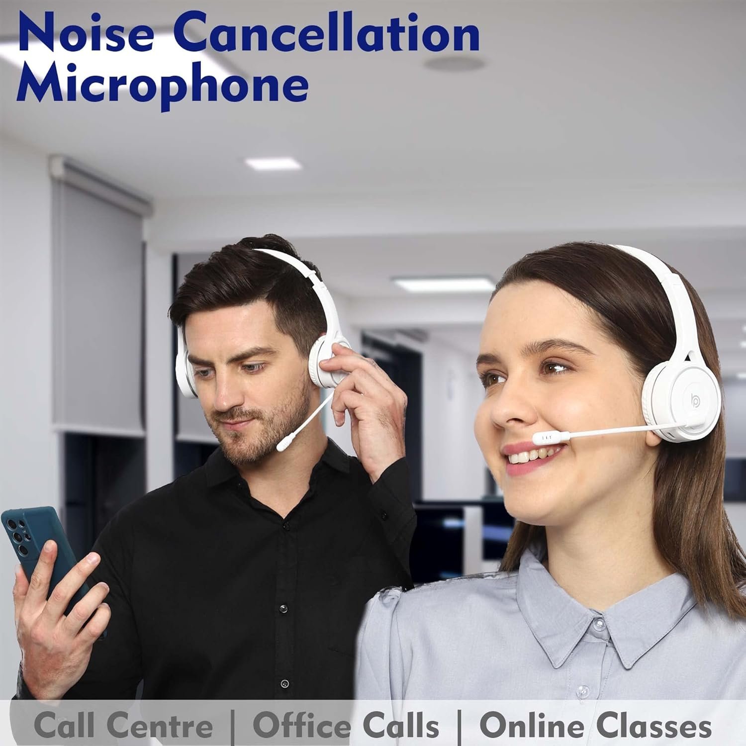 NOISE CANCELLATION MIC: Powered with AI noise reduction algorithm and QCC8020 CVC8.0 noise reduction technology, eliminates all external noises & disturbance. Perfect headset for call centre, office, driving or online classes.