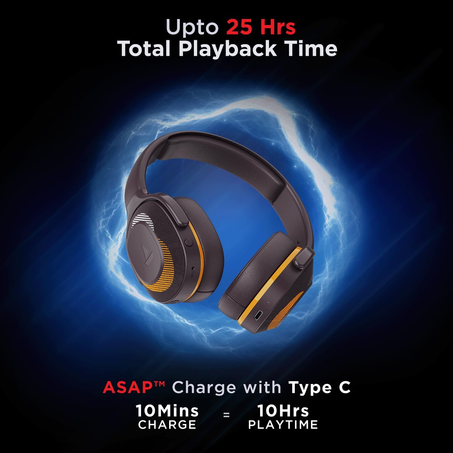 ASAP Charge- Courtesy our ASAP Charge tech, the headphones can fetch a total playtime of up to 10 hours in just 10 min of charging. Battery Capacity: 500 mAh