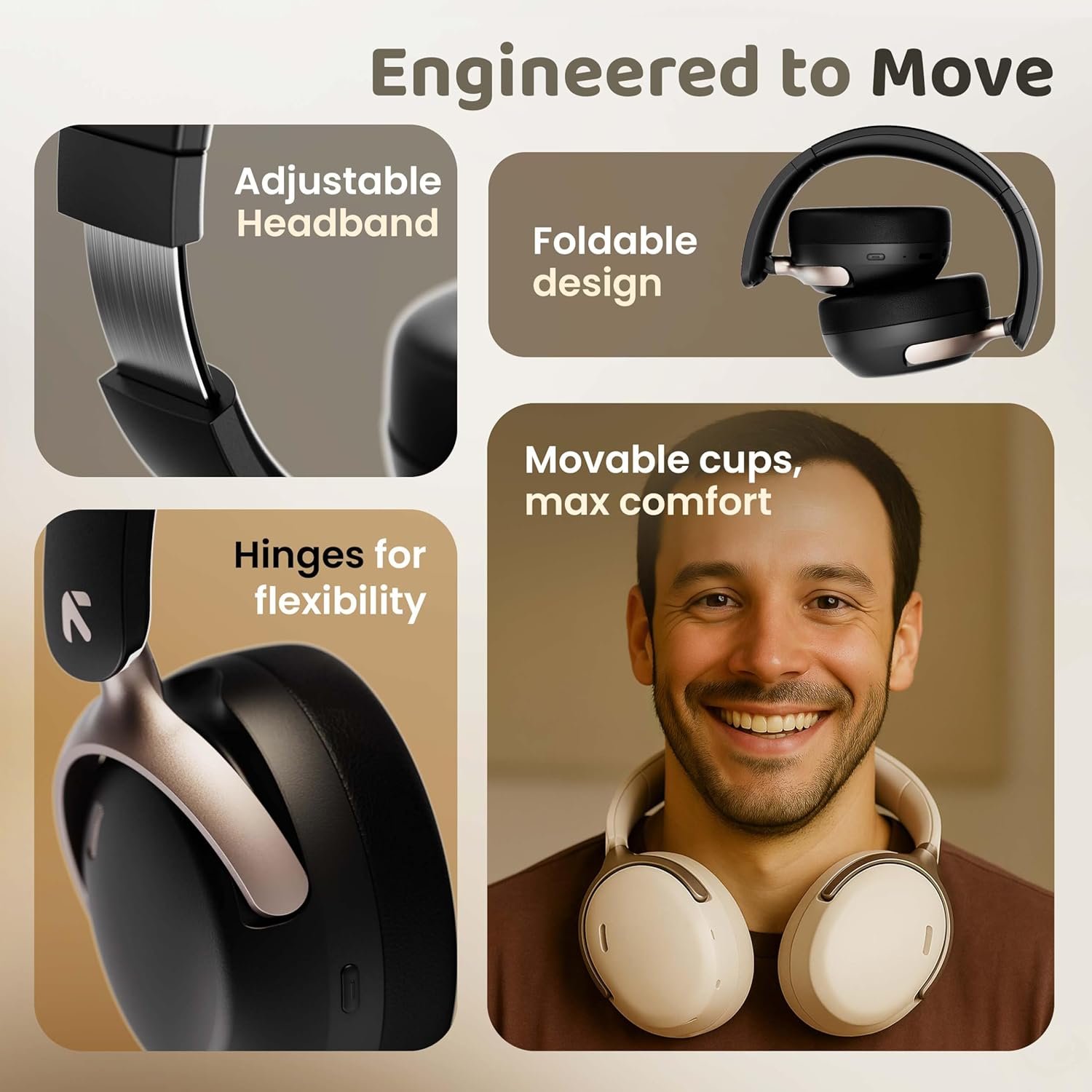 ✅ 70H Playtime – Enjoy up to 70 hours of uninterrupted playtime with Soniq wireless headphones, perfect for travel, office, and daily use.