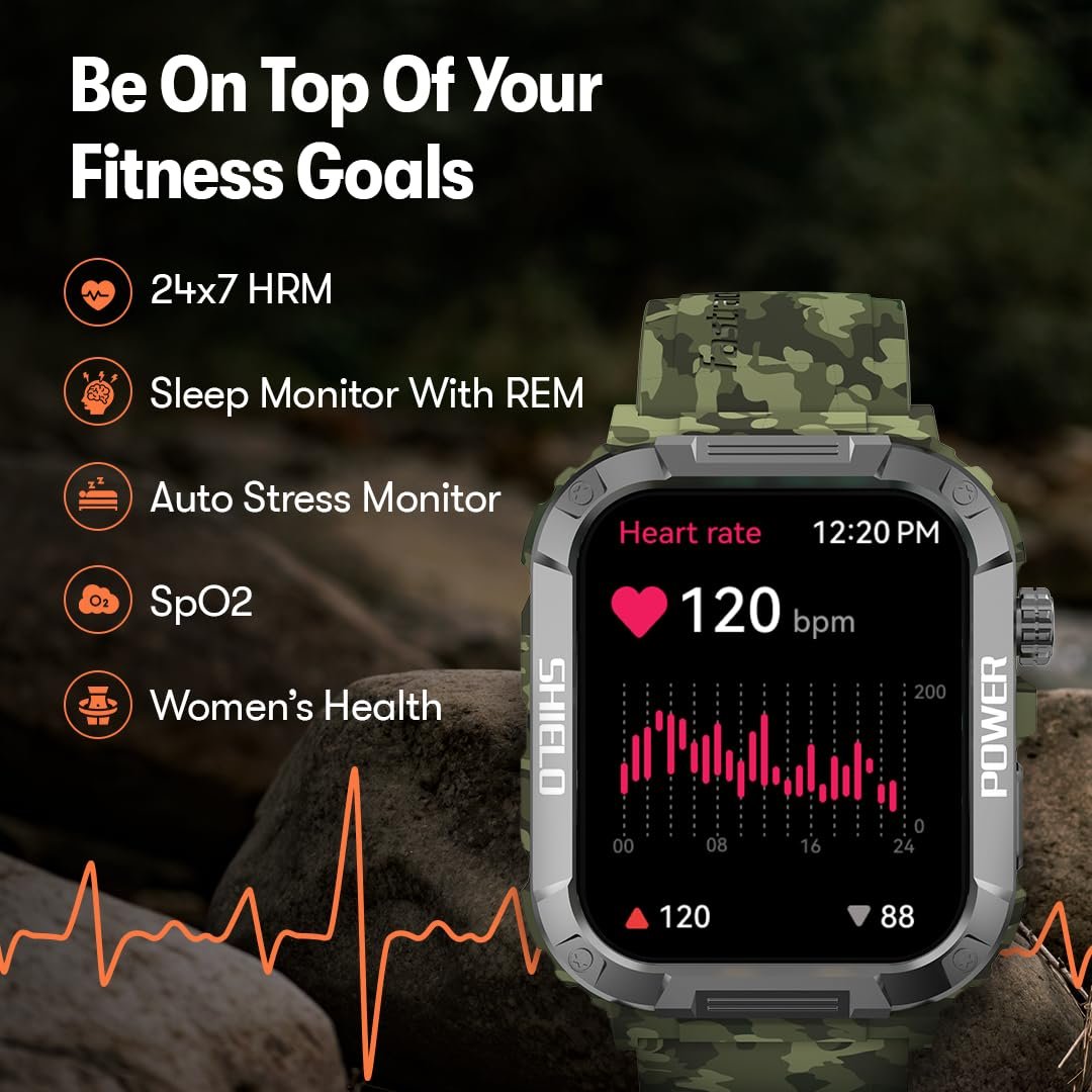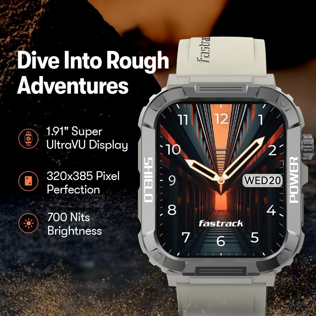 Fastrack Limitless Valor with 1.91″ UltraVU HD Display with 320 x 385 Pixel Resolution Rugged Smartwatch, Functional Crown, SingleSync BT Calling, Alarm, Stopwatch, Timer, 100+ Sports Modes with Sports Records, Auto Stress Monitor, 24 x 7 Heart Rate Monitor, SpO2 and Sleep Monitor with REM Sleep, Breathe Exercise, Alarm, Stopwatch and Timer, Notifications, Weather Display, Camera and Music Control