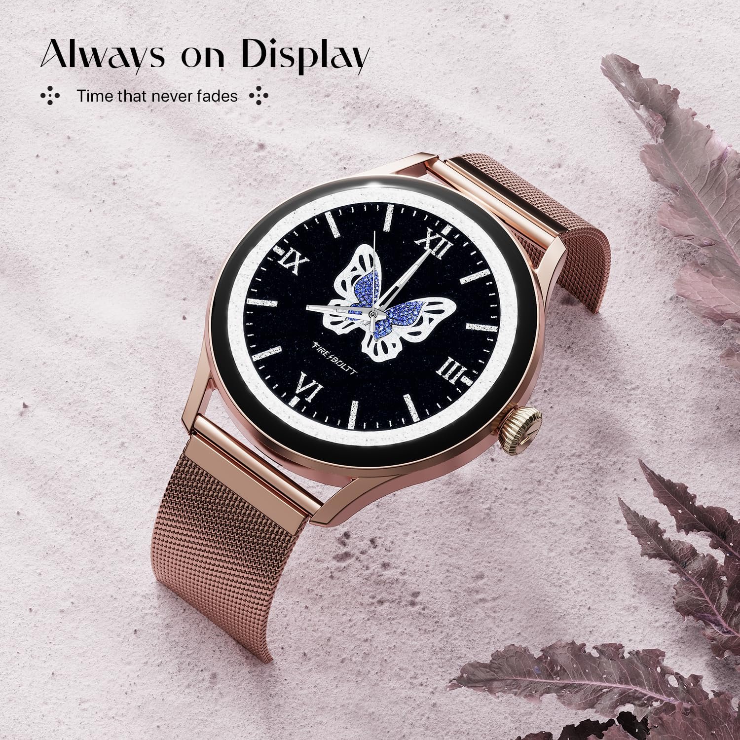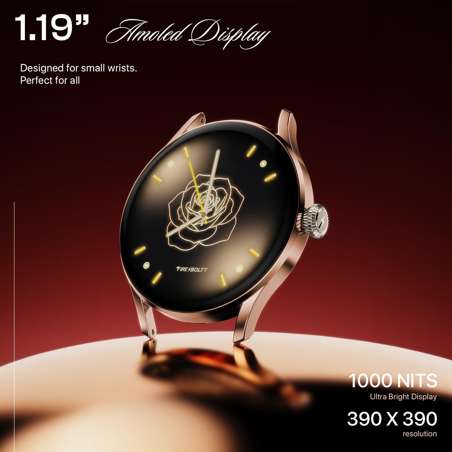 Elegant AMOLED Display for Women – Fire-Boltt Glitz features a 1.19 inch AMOLED display with 390×390 resolution, delivering sharp visuals, rich colours and a premium viewing experience designed for women.