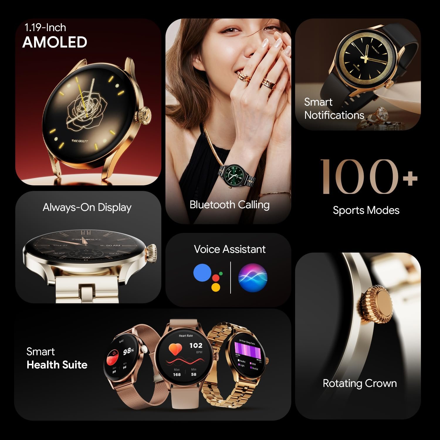 Always On Display with 1000 Nits Brightness – Enjoy clear visibility even under bright sunlight with 1000 nits peak brightness and Always On Display, making this women smartwatch perfect for indoor and outdoor use.