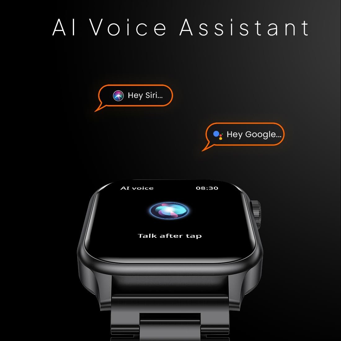 AI Voice Assistance: Empower your daily routine with AI-powered voice assistance, letting you manage tasks, set alarms, get answers, and operate your smartwatch using simple voice commands.