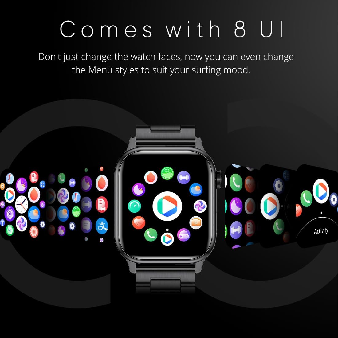 Innovative Neon UI & 8 Interactions: Explore a cutting-edge Neon UI with 8 interactive modes, offering a customizable and intuitive interface that redefines smartwatch usability.