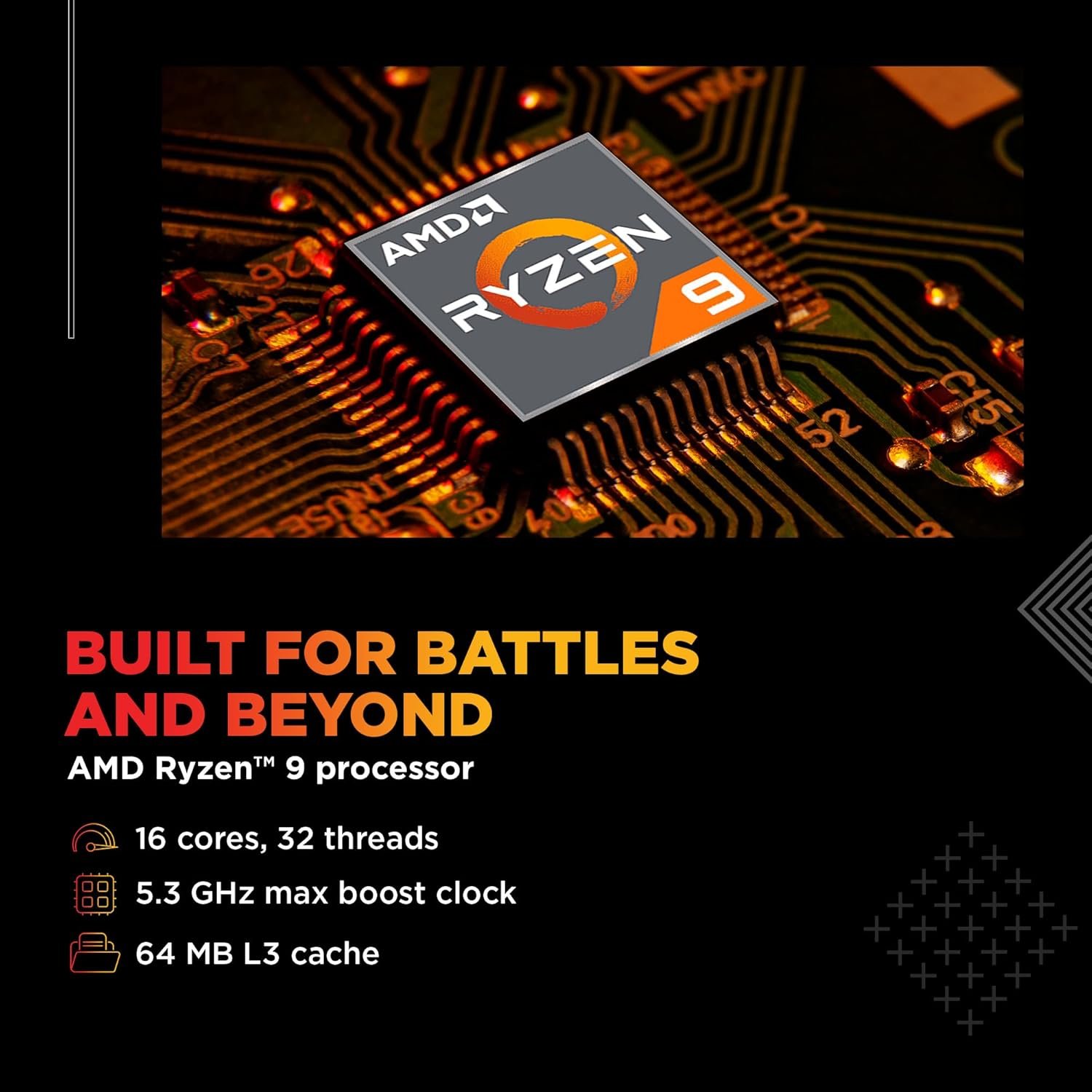 Processor, Memory & Storage: AMD Ryzen 9 8940HX (up to 5.3 GHz max boost clock, 64 MB L3 cache 16 cores, 32 threads)| Memory: 24 GB DDR5-5600 MT/s (1 x 24 GB) | Storage: 1 TB PCIe Gen4 NVMe M.2 SSD