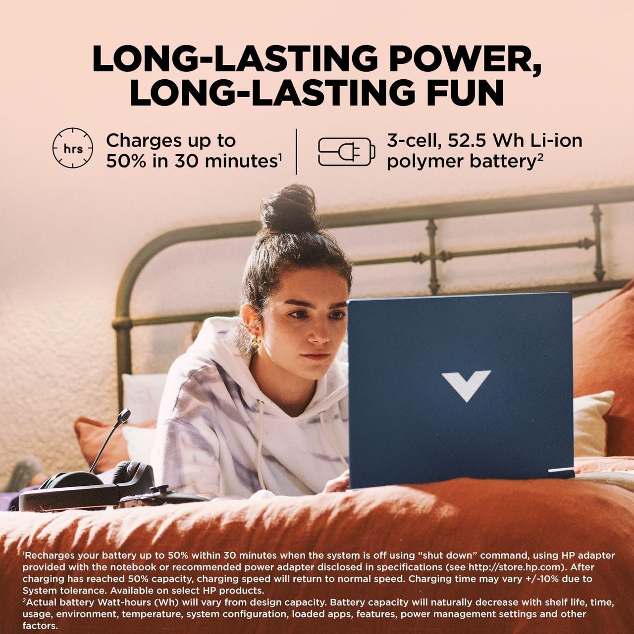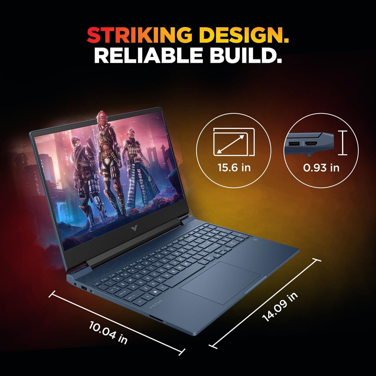 Level up with the HP Victus Gaming Laptop, featuring AMD Ryzen 7 7445HS to multitask and play effortlessly. Enjoy radically realistic play with NVIDIA GeForce RTX 2050 graphics and incredible 16 GB DDR5 RAM and 512 GB SSD. Type freely with a full-size backlit keyboard and remain in the game with DTS:X Ultra Audio and HD camera. The 39.62 cm (15.6) FHD IPS display provides rich, anti-glare visuals. Fast Charge: 50% in 30 minutes, Wi-Fi 6: smooth connectivity. Eco-friendly and performance-optimized, crafted from recycled materials, the HP Victus: win the game, last long.