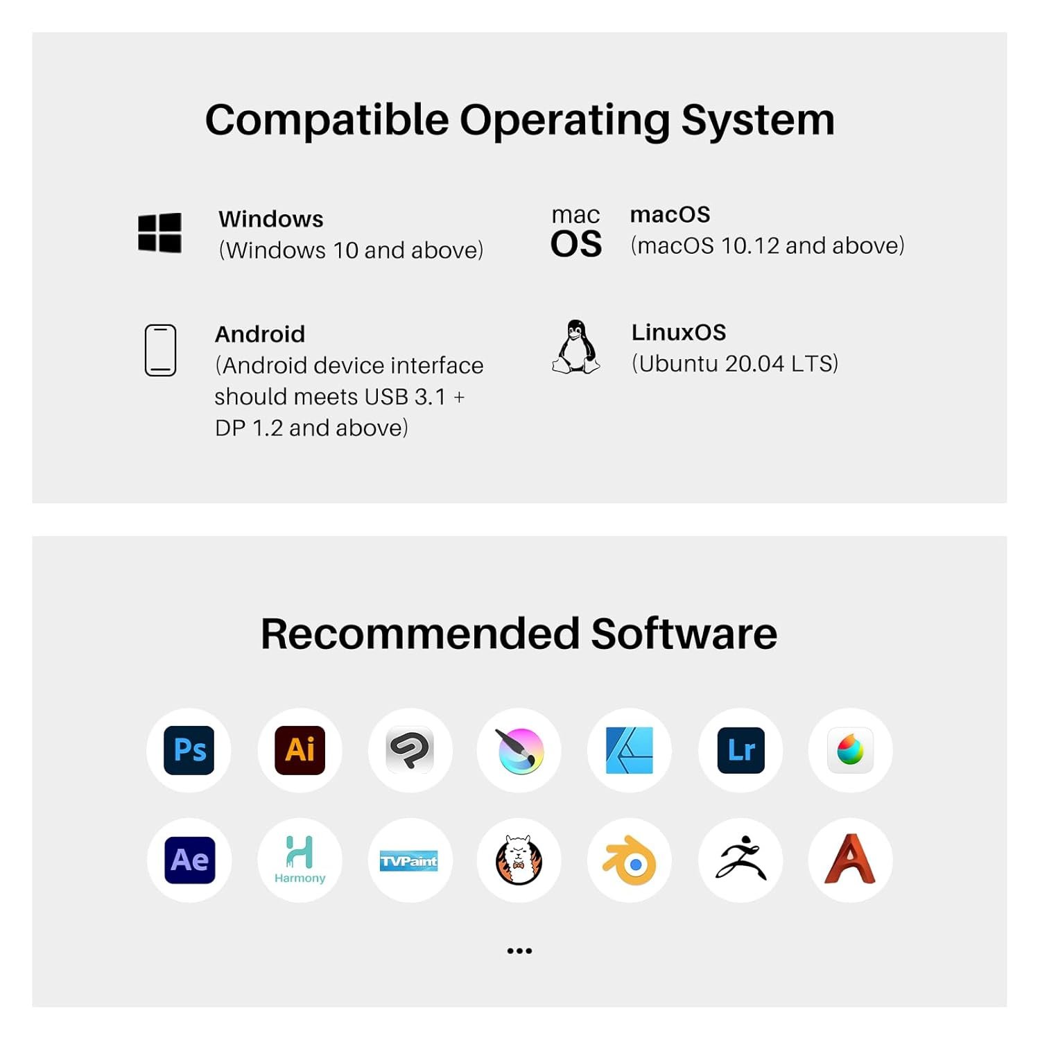 [Strong Compatibility] Kamvas 16 (Gen 3) drawing monitor supports a variety of mainstream software. It is compatible with Windows 10 or later, Mac OS 10.12 or later, Android devices that support USB3.1 GEN1 and DP1.2, and Linux OS(Ubuntu 20.04 LTS).