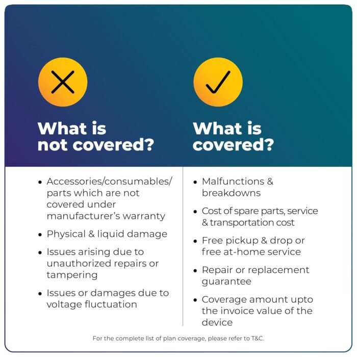 • Products that do not carry an existing manufacturer’s coverage valid in India for at least 1 year at the time of purchase.