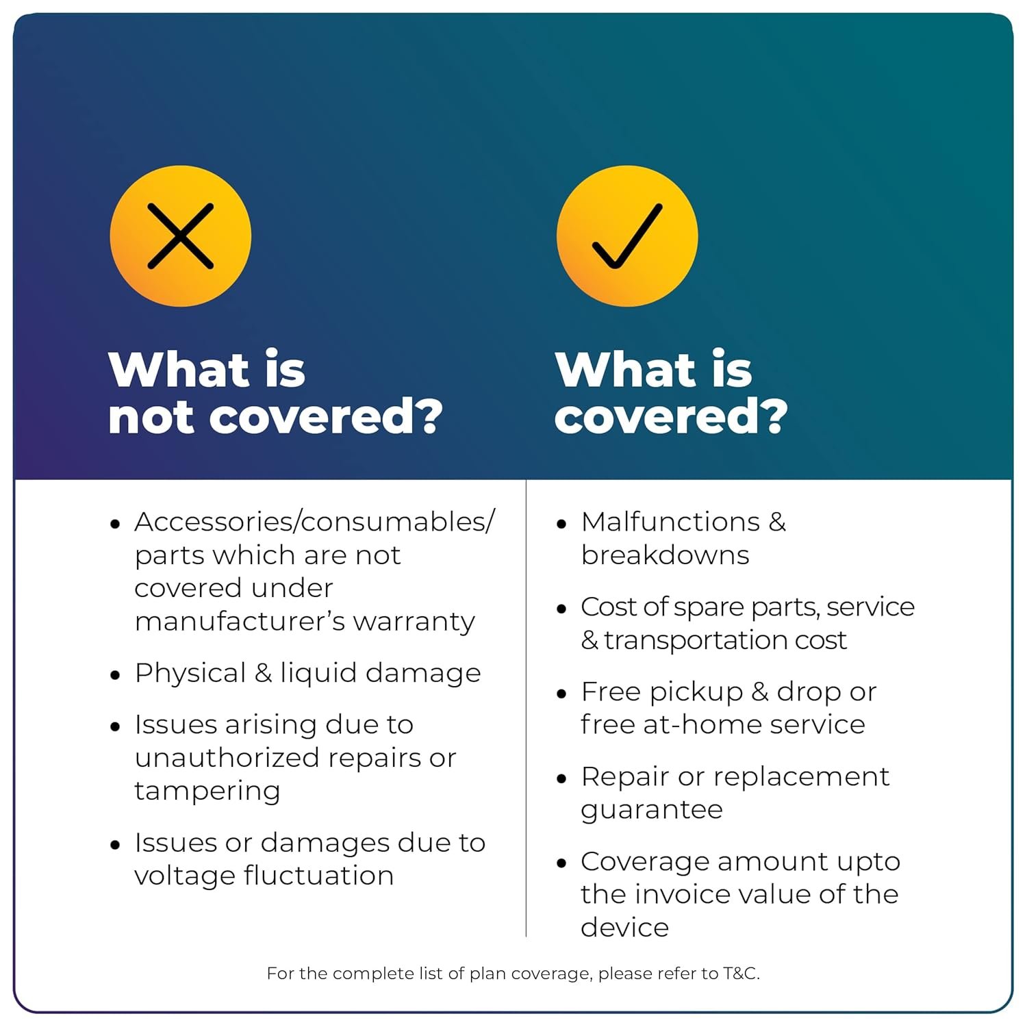 • No Depreciation: We will cover the full value of the device till the end of the plan.