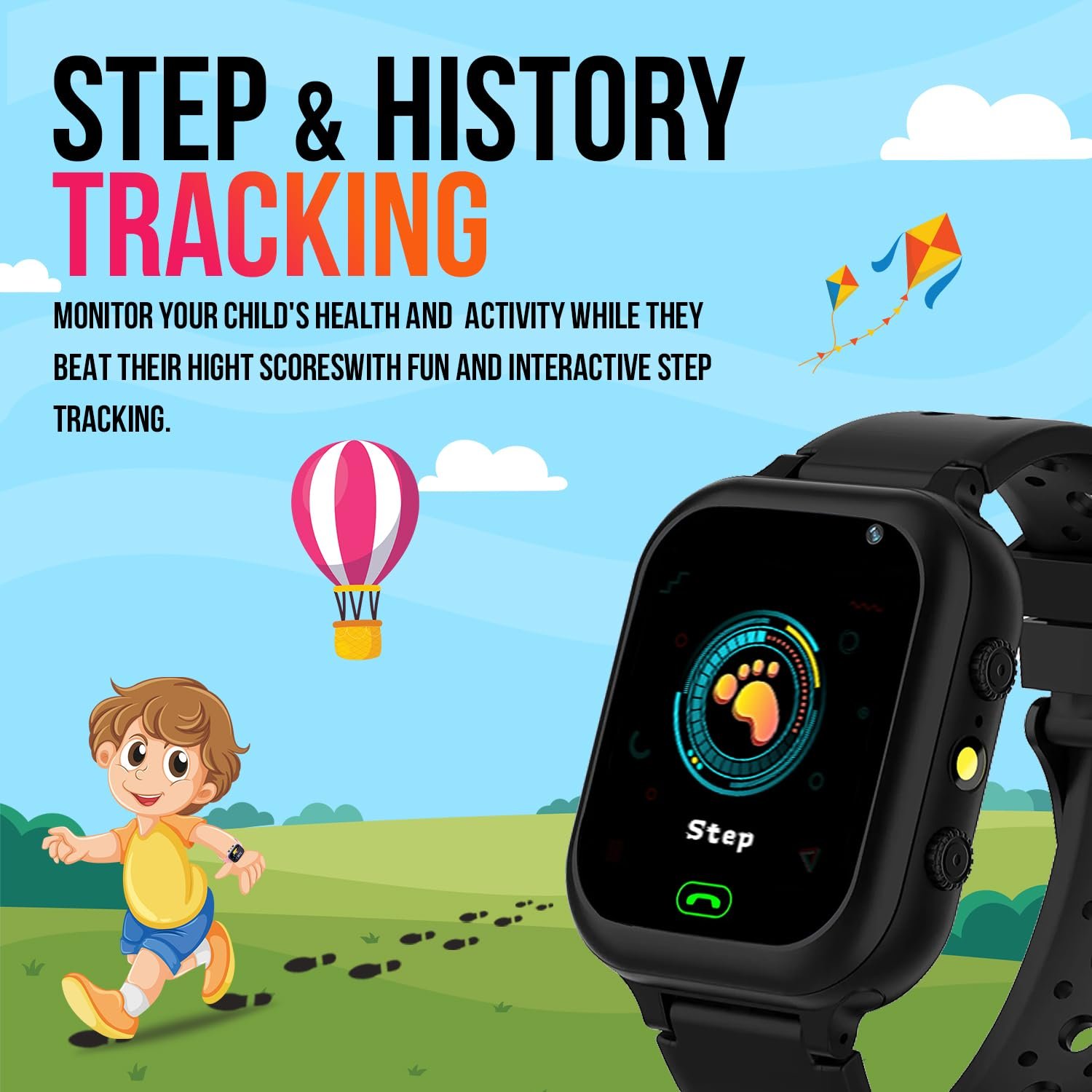 【Pedometer/calories】Our kids smart watch can to track our kids activity steps and calories burned. It encourages children to exercise actively during the holidays. You can set the target number of steps, and when the child is finished, you can reward the child, let the child love sports. Let children to stay healthy and active!