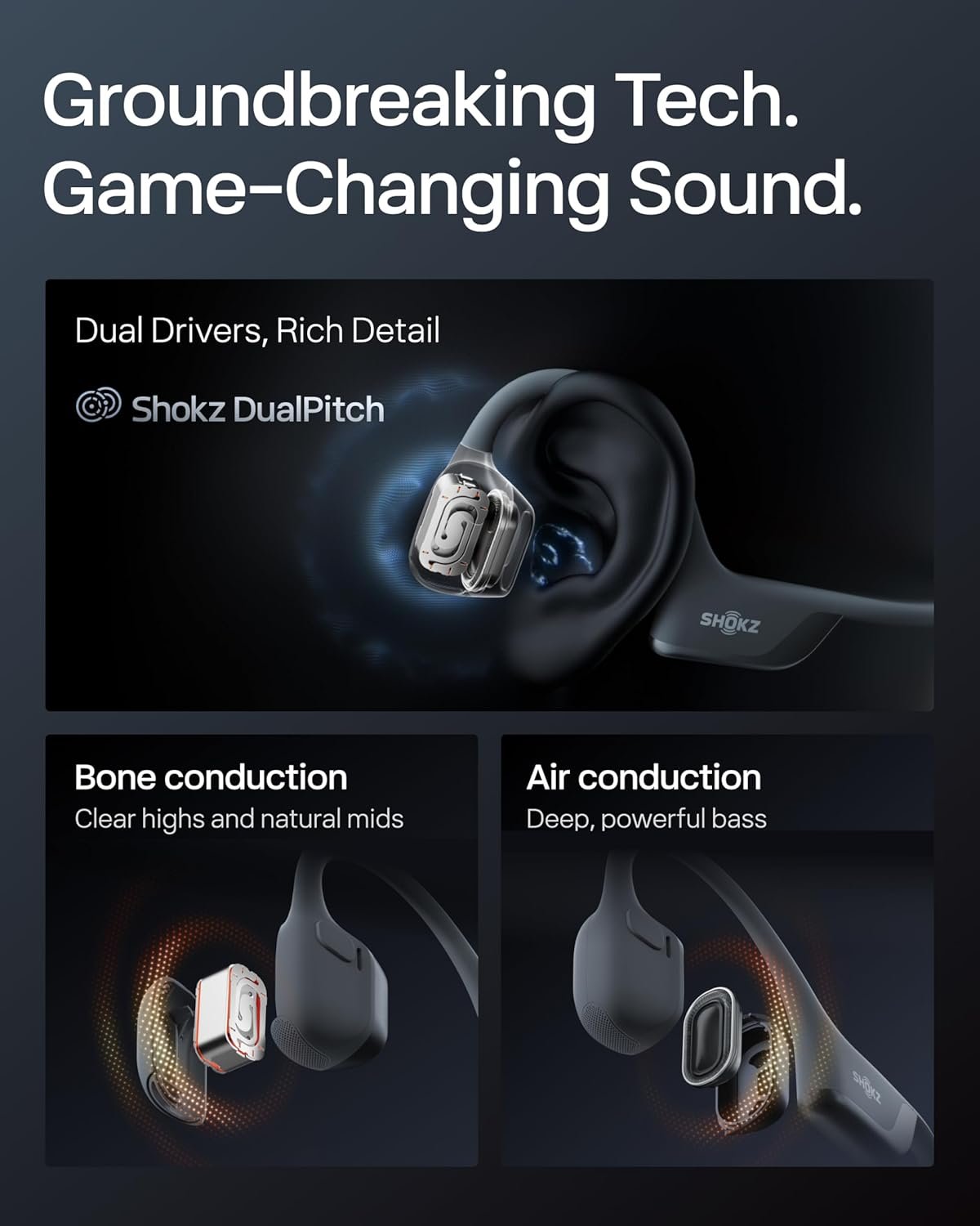 【Dual Drivers, Superior Sound】 – Meet OpenRun Pro 2, the all-new flagship headphone from Shokz that rewrites the rules of open-ear audio, superpowered by Shokz DualPitch. This new technology is about a perfect duet between a bone conduction and air conduction speaker. The result is an unparalleled listening experience that’s as clear as it is powerful.