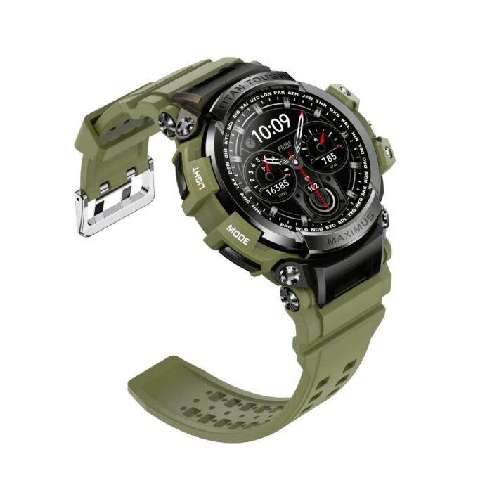 MAXIMUS Smartwatch – Veteran Owned Company. Stay connected, motivated, and in control of your health with the Titan Tough Smartwatch Maximus. Engineered for durability and packed with advanced sensors, this sleek wrist companion keeps pace with every step—whether you’re hitting the gym, the trails, or the boardroom. Enjoy crystal-clear readouts on a 1.3″ HD touchscreen, track heart rate, blood pressure, sleep, and activity 24/7, and never miss a beat with Bluetooth call and message alerts. Rated IP68 for dust and water resistance, the Maximus is as rugged as it is refined.
